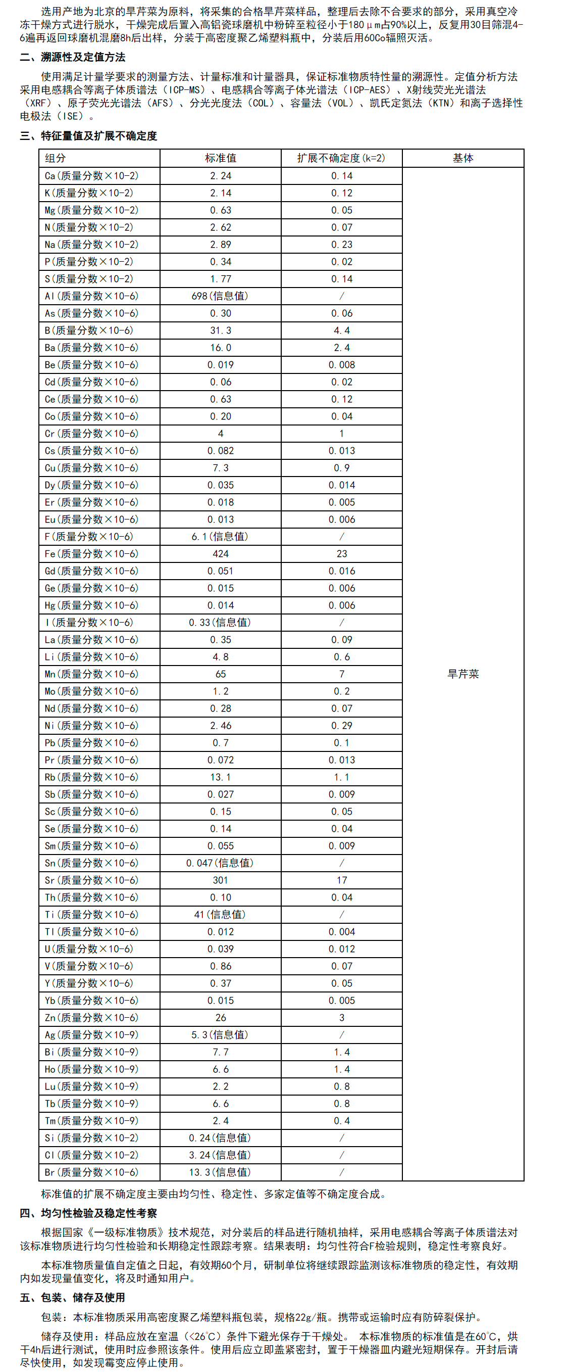 GBW10245 紫菜粉中元素成分分析標準物質 22g/瓶,59組分